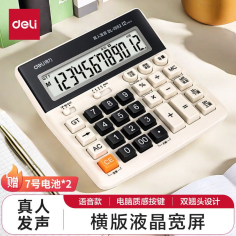 得力(deli)1552 电子计算器 电脑按键语音计算器12位大屏显示语音 白色