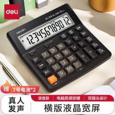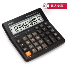 得力(deli)1552 电子计算器 电脑按键语音计算器12位大屏显示语音 咖啡色