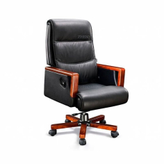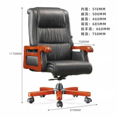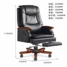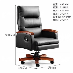 臻远 ZY-7637 办公椅 办公大班椅皮椅可躺升降可移动电脑椅黑色牛皮740*640*1140mm