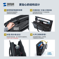 山业(SANWA SUPPLY)200-BAG124WP 电脑包手提 防泼水大容量笔记本包 单肩包男 商务斜跨包 公文包日常通勤 15.6英寸 收纳包