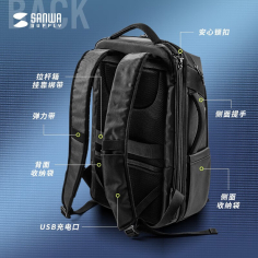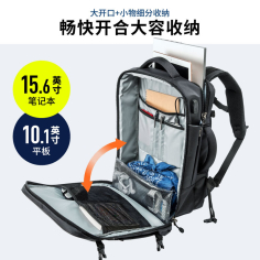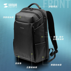 山业(SANWA SUPPLY)BAG-BPC3BK 电脑包 大容量双肩包 商务背包男 防泼水笔记本包 usb充电口 大开口设计 黑色 15.6英寸