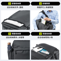 爱华仕 OCB4915 收纳包 商务通勤15.6英寸电脑双肩包外置USB充电口可充电黑色