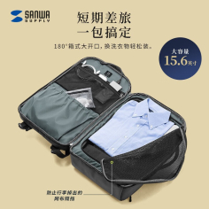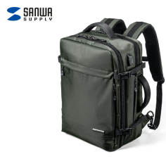 山业(SANWA SUPPLY)BAG-BPC3BK 电脑包 大容量双肩包 商务背包男 防泼水笔记本包 usb充电口 大开口设计 橄榄灰 15.6英寸