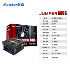 航嘉(Huntkey)JUMPER600S 额定600W 电脑电源(主动PFC/温控风扇/宽幅电压/RTX2080/高转换效率)
