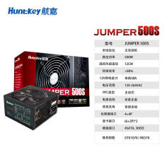 航嘉(Huntkey)JUMPER500S 额定500W 电脑电源(主动PFC/双管正激/温控风扇/宽幅电压/背部走线/三年质保)