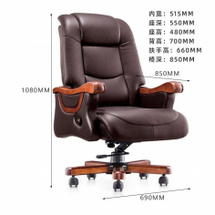 臻远 ZY-7562 办公椅 办公大班椅皮椅可躺升降转椅电脑椅咖牛皮690*850*1080mm