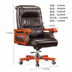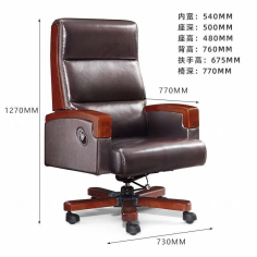 臻远 ZY-7560 办公椅 办公大班椅皮椅可躺升降转椅电脑椅黑牛皮730*770*1270mm