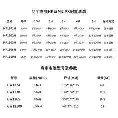 商宇 HP1102H UPS不间断电源2KVA/1.6KW 电脑稳压后备电源 续航套餐 续航1小时|6节商宇38AH蓄电池+A3电池柜